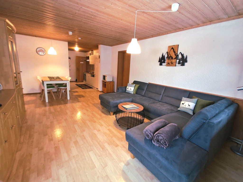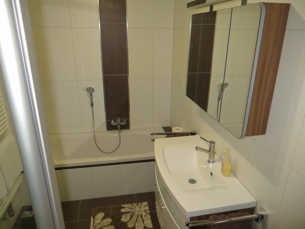 Größe ca. 50 m² - bestehend aus Wohnküche mit Einbauküche einschl. Spülmaschine und Mikrowelle,Backofen mit Cerankochfeld, Kühlschrank mit Gefrierfach,Essecke, Schlafzimmer (1 Doppelbett und ein Einzelbett), Bad mit Wanne, Dusche und WC,Haartrockner, Balkon sowie 32"(82cm) Flachbild TV . Die Wohnung hat einen Safe zur kostenlosen Nutzung. Preis inkl. Bettwäsche,Handtücher und Endreinigung
